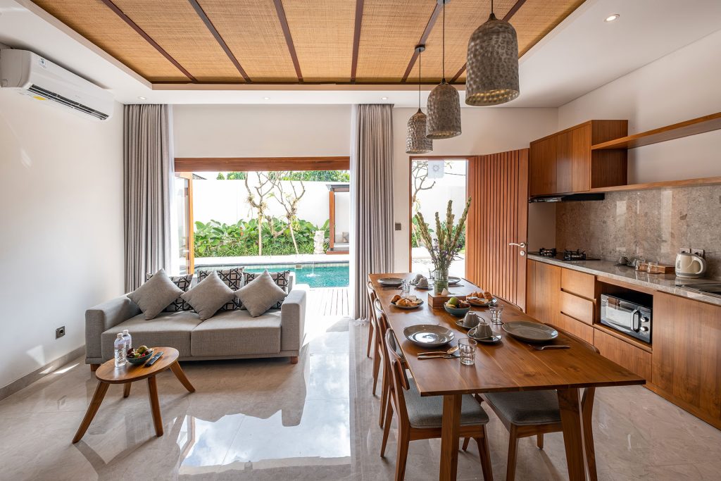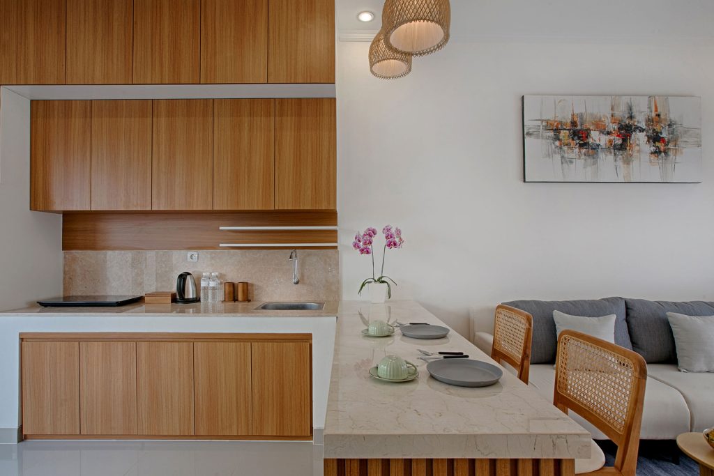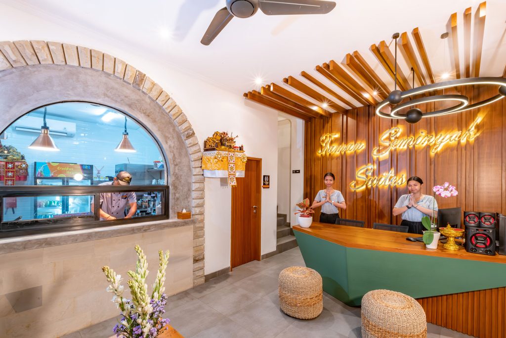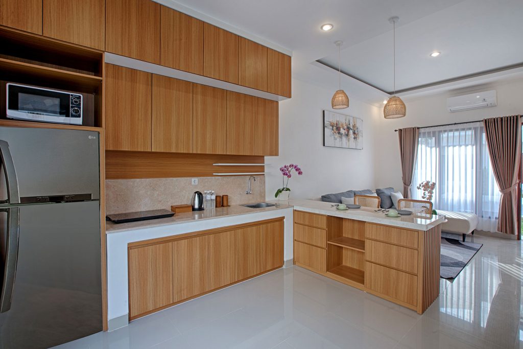 Step into our multipurpose cozy corner Beji Kitchen and Lobby, nestled inside the Taman Seminyak Suites.
